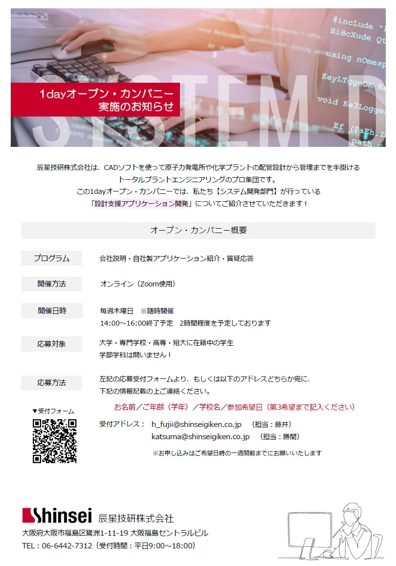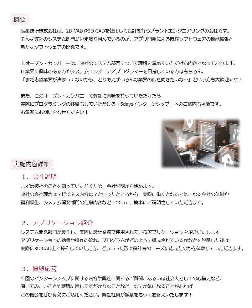 2025年度のインターンシップにつきまして、対面型の5daysインターンシップに加えて、オンライン1dayオープン・カンパニーの実施も決定致しました!